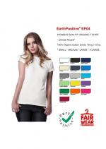 (Continental Clothing) EarthPositive dames T-shirt: van gecertificeerd biologisch katoen, fair trade en.....geproduceerd m.b.v. duurzaam opgewekte zonne- en windenergie. De pasvorm is normaal. Bestelminimum is 10 stuks. Keurmerk: EKO Kwaliteit: 145 gr./m2 |